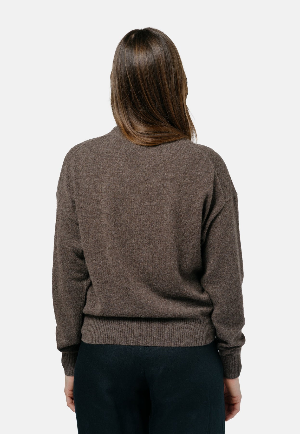 Classic V-neck cardiganRelaxed fitSlightly cropped lengthDropped shouldersWide ribbed trims on sleeves and bodyTonal Eco Rozo buttons with engraved 1 People logoRecycled polyester main label and wash labelCrafted from supremely soft and tactile cashmerePerfectly pairs with Ulaanbaatar Strap TopThe off white melange color version is undyed, it's the natural color of the fibreThe brown melange color version is dyed with OEKO-TEX® STANDARD 100 certified dyeMade in Inner Mongolia,China