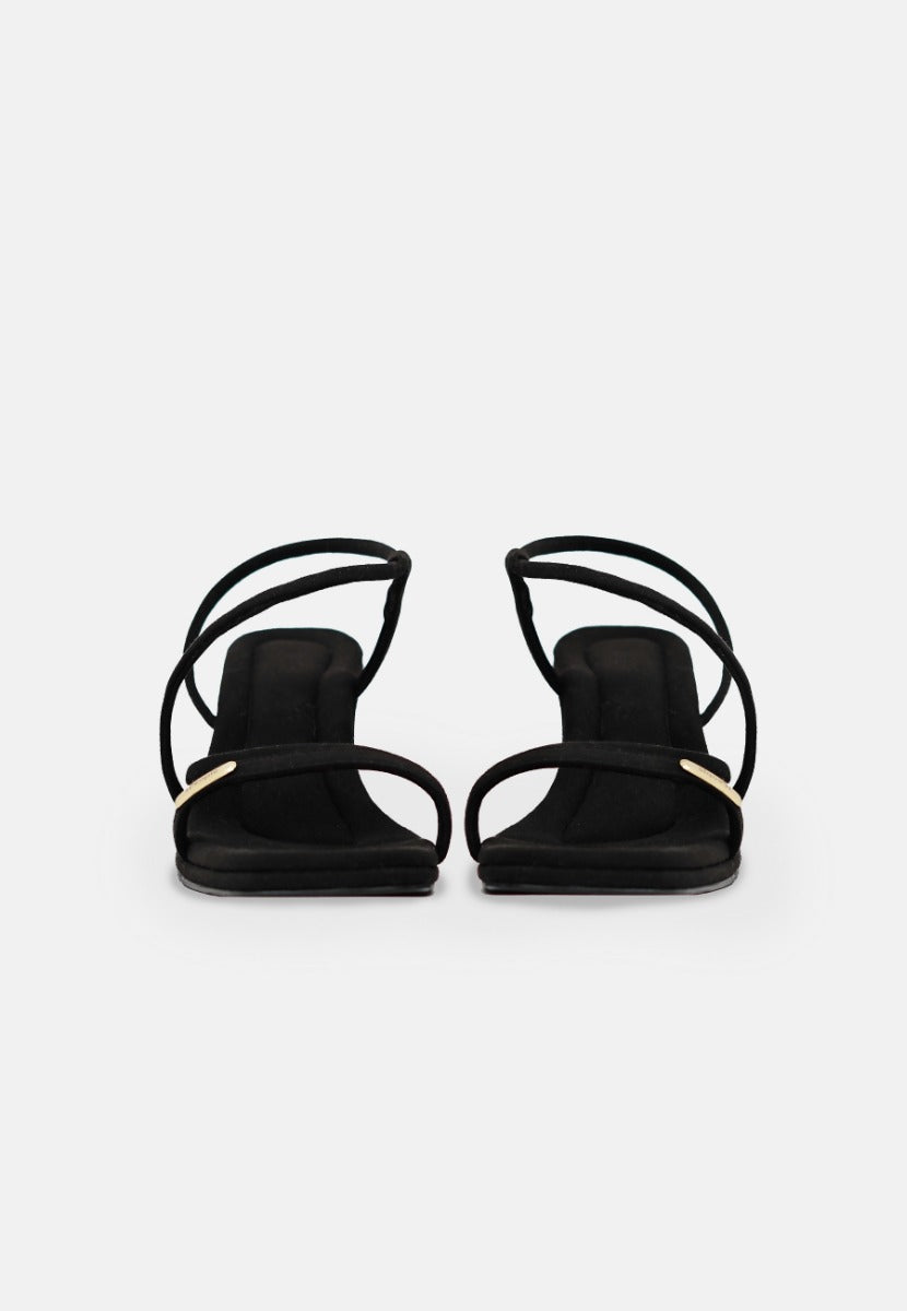 Details - 7 cm mid-heels shoes made in Eco Suede- 1 People recycled brass logo on the front strap- Zahonero Comfort Insole- Recyclable Thermo Rubber Compound for the soles- Recyclable plastic heels