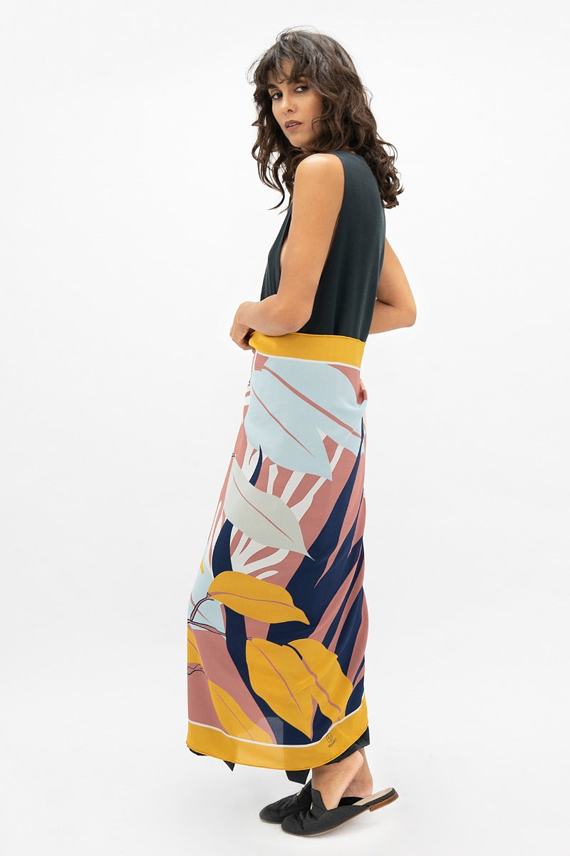 Details - Illustration inspired by the green activist, Wangari Maathai- Digitally printed- Hand-rolled edges- Square-shaped- Measuring 95 cm x 95 cm- This scarf comes with an elegant detachable recycled brass corner pendant